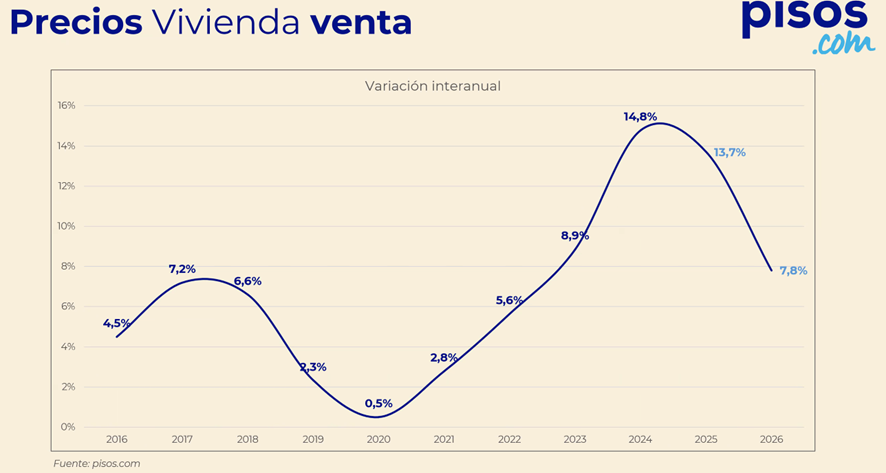 La clave del futuro del mercado de la vivienda en España no será el crecimiento económico ni los tipos de interés, que ya encaran su estabilización, sino la capacidad del país para aumentar la oferta, simplificar la promoción y generar vivienda asequible. Así, aunque la economía española se caracteriza por un dinamismo notable, la accesibilidad a la vivienda continúa siendo el gran reto. Esta es la principal conclusión del portal inmobiliario pisos.com que, como cada año, hace balance de cómo se han comportado los principales indicadores que miden la salud del sector y emite sus previsiones de cara al nuevo ejercicio.