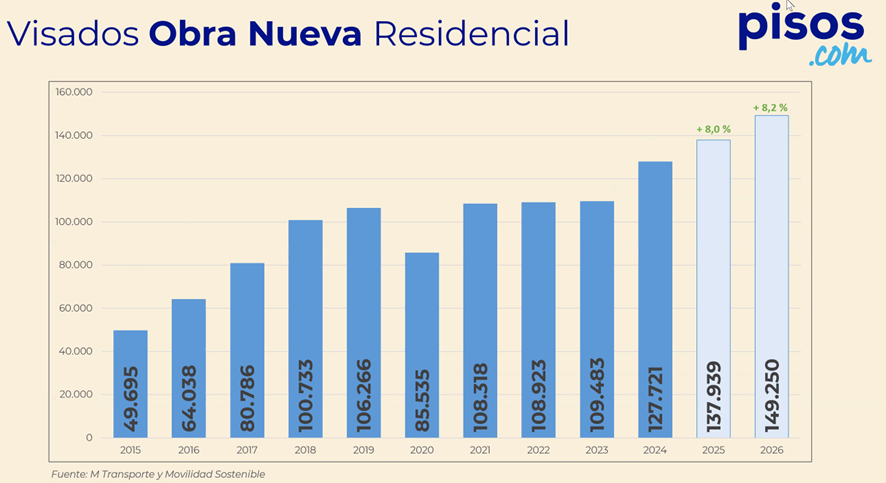 Los visados de obra nueva residencial se colocaron por encima de las 127.700 unidades en 2024. Esta cifra se elevaría a alrededor de 138.000 en 2025, un ascenso interanual aproximado del 8%. Las previsiones respecto a 2026 rondarían las 150.000 licencias. “El desarrollo de nuevas promociones va levantando el vuelo, pero el déficit residencial persiste, y mientras sea tan significativo, será inviable aliviar la presión sobre los precios”, admite Font, que recuerda que “las políticas públicas y los promotores tienen una oportunidad clave en los próximos años para orientar la expansión de la construcción hacia las verdaderas necesidades del mercado: no solo volumen, sino vivienda accesible”.